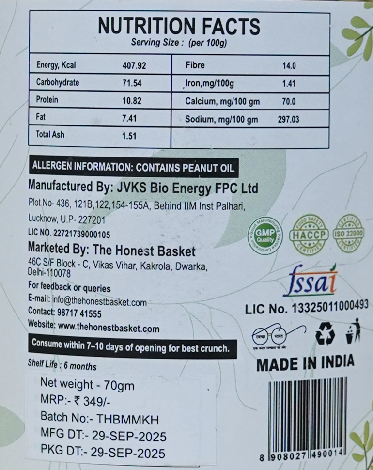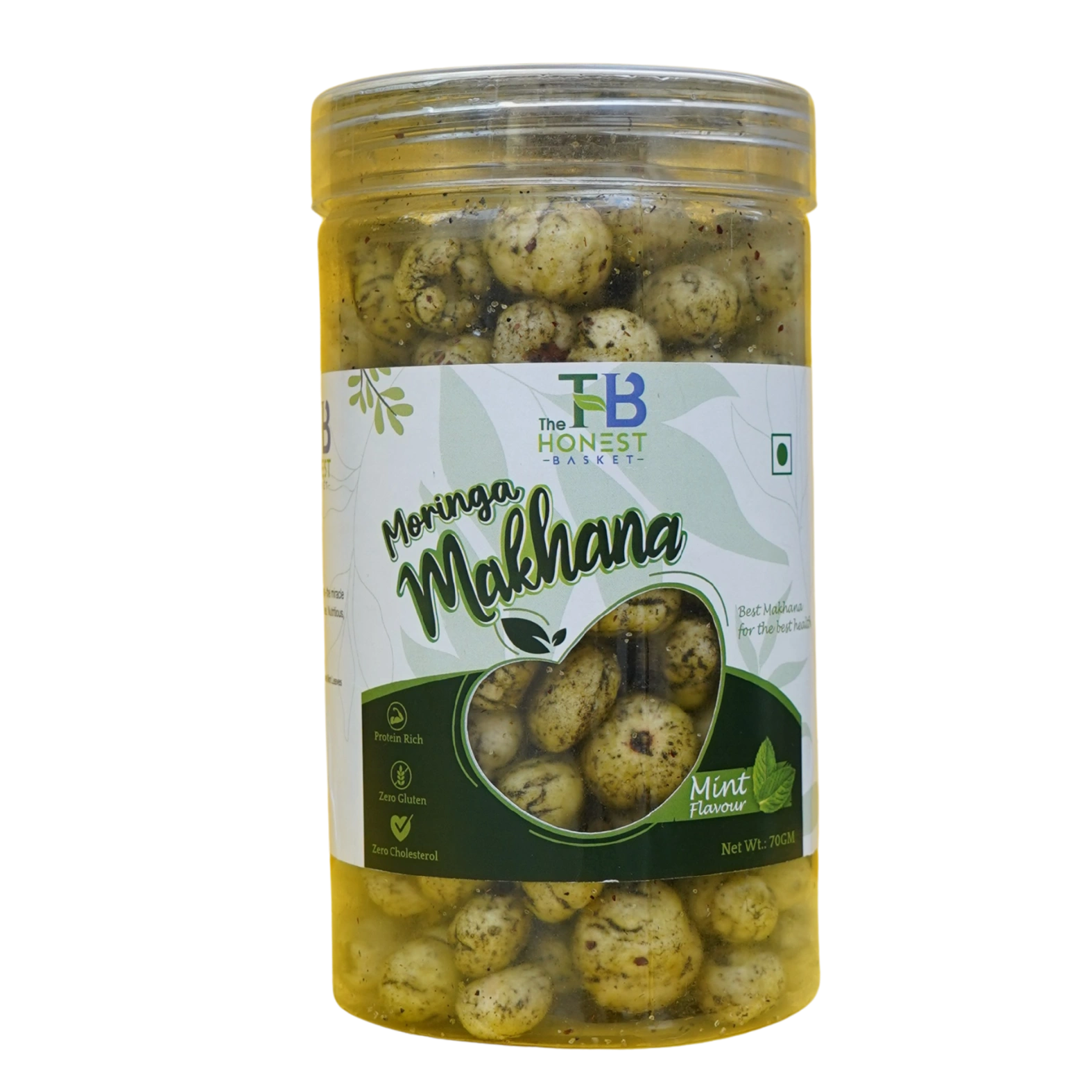 The Honest Basket’s Moringa Makhana Range combines the purity of nature with the power of traditional nutrition. Each crunchy, roasted fox nut is infused with the superfood goodness of moringa and seasoned with authentic Indian flavours — delivering a guilt-free snack that nourishes your body and soul.
