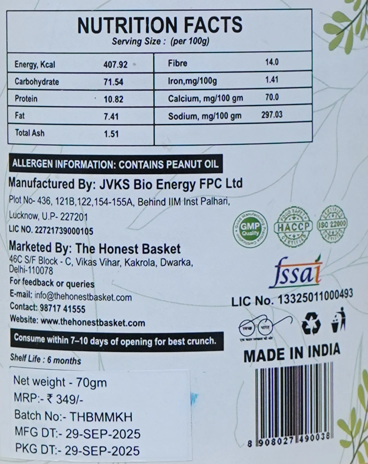 • Form: Crunchy roasted makhana with mint–moringa seasoning