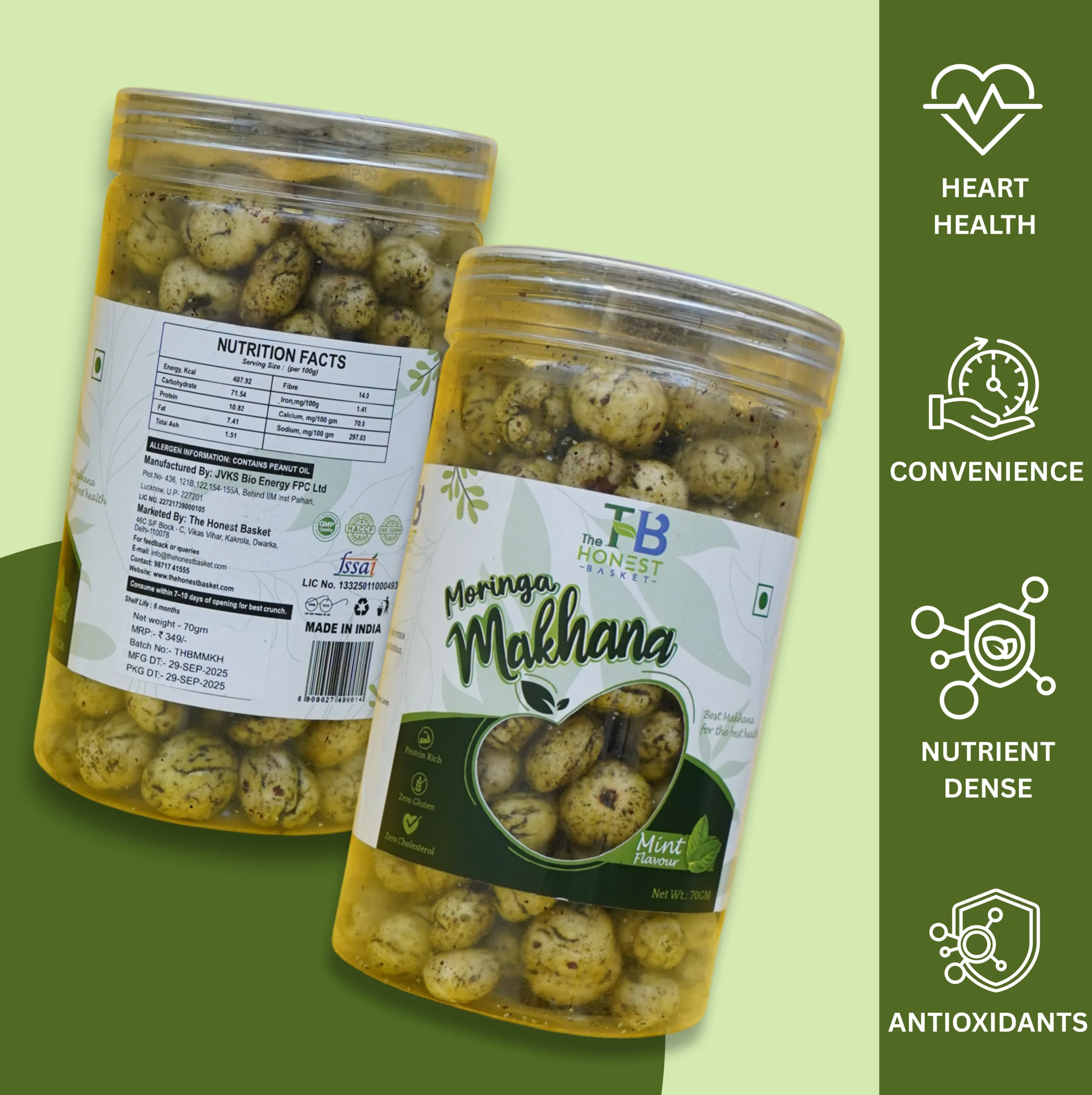 Form: Crunchy roasted makhana with mint–moringa seasoning