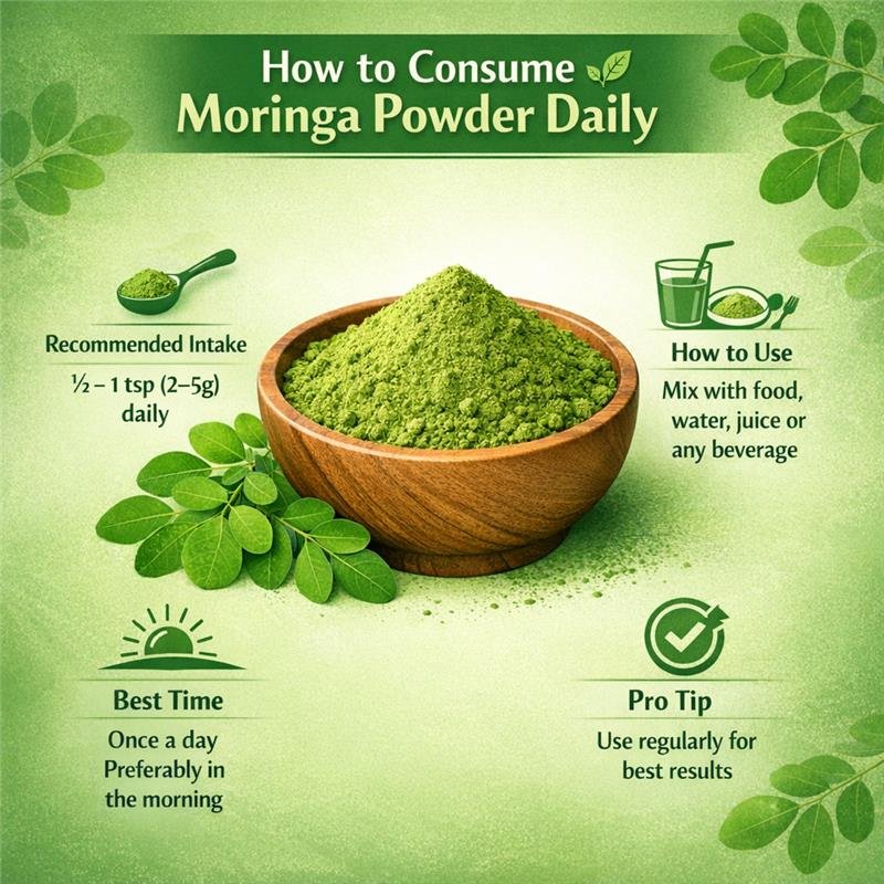 - Energy Booster: Pure Moringa powder is rich in vitamins and minerals. It fights fatigue and provides sustainable energy throughout the day without the crash of caffeine